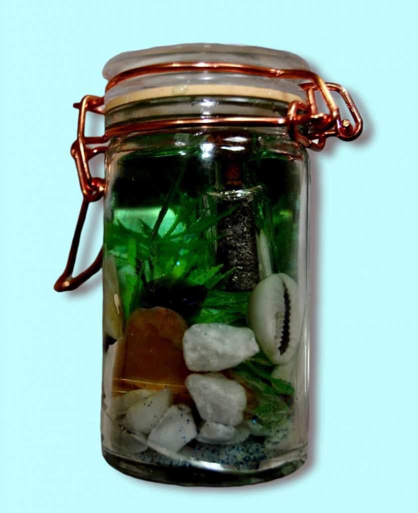 Eternal Rest: A Tiny Bottle of Cremation Ash/a lock of hair, a snippet of fur amidst Ocean Shells, Sand, and Seaweed from a beloved person or pet secured forever in resin.